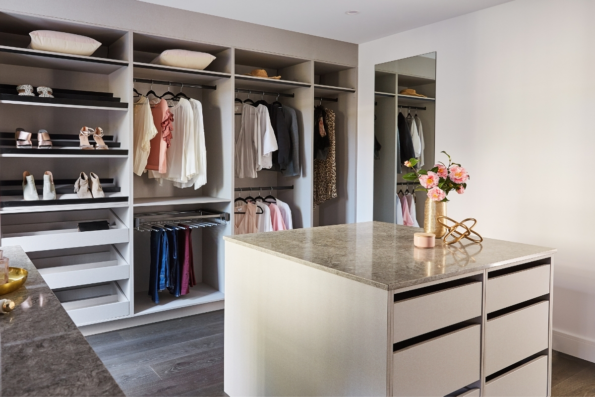 The epitome of luxury and ultimate organisation, Walk-in Wardrobes create so much more than just a smart storage solution – they are a daily style experience. So, how do you create a Walk-in robe with ‘wow’? Below we explore the essential elements that work together to bring your dream Walk-in to life.