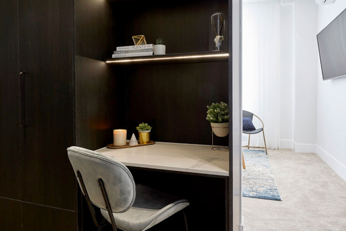 A makeup station is the perfect fit within this space as it adds to the joy of getting ready each day. Alternatively, with work/study areas increasingly important in homes around Australia, including a desk into your new robe design is a great choice and increases the value of the space.