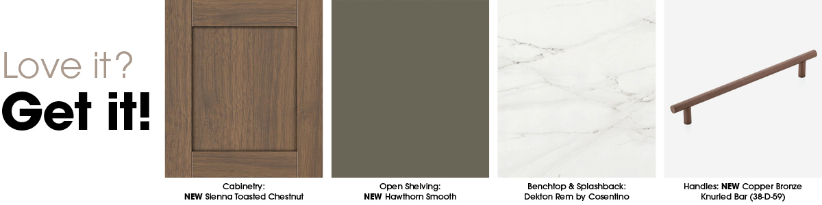 - Cabinetry: NEW Sienna Toasted Chestnut