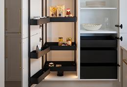 Accessories: NEW Hettich AvanTech YOU Drawers, NEW Hettich Cutlery Trays, NEW Hettich Spice Tray, NEW Hettich Plate Holder, NEW Hettich Non-slip Matts, Häfele Ninka Bin