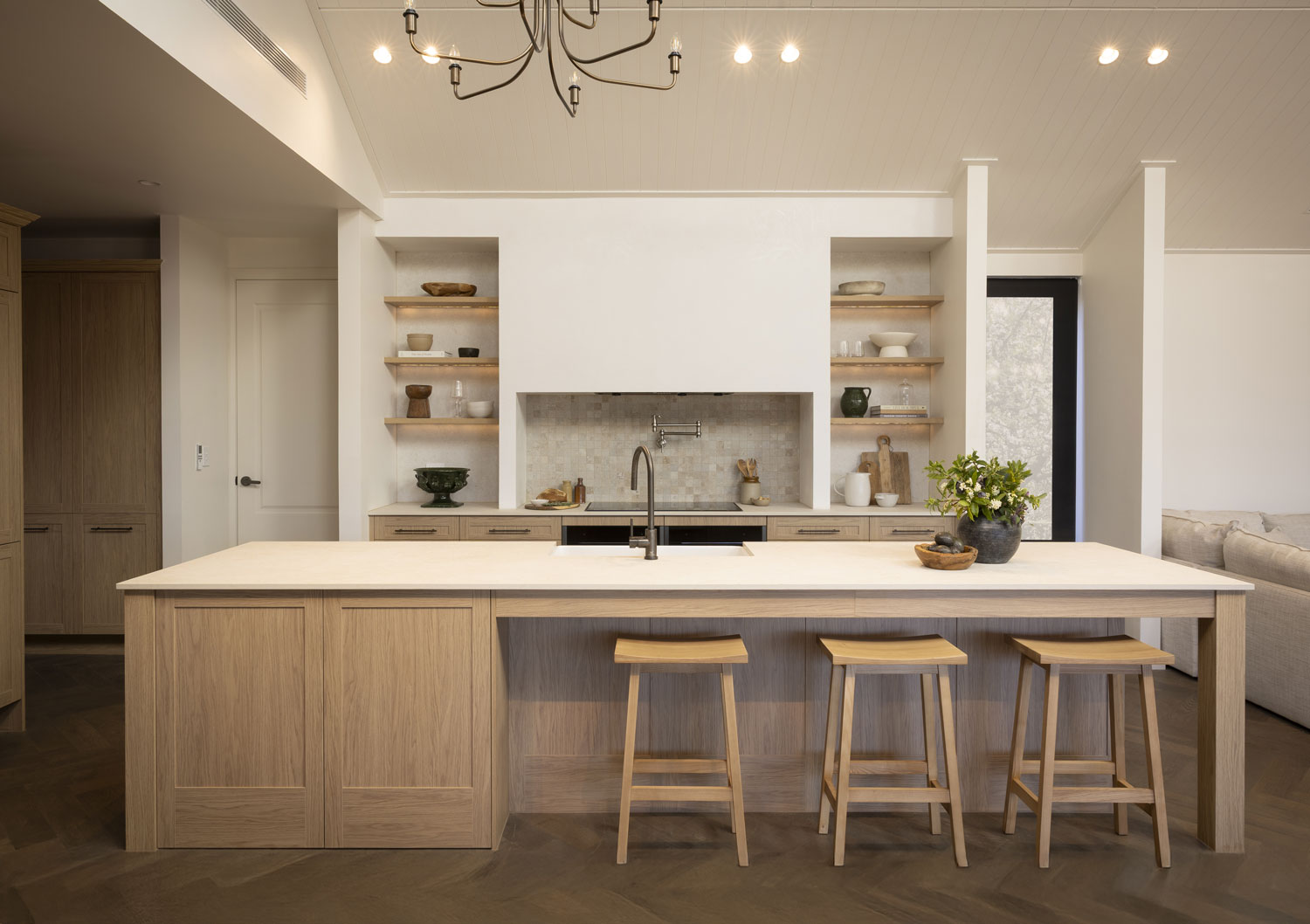 Robby and Mat tied for first place with their sophisticated take on the modern farmhouse kitchen style. The L-shaped kitchen design delivers a highly functional space with generous storage, while the colour palette of natural textures and refined finishes creates a warm and grounded feel.